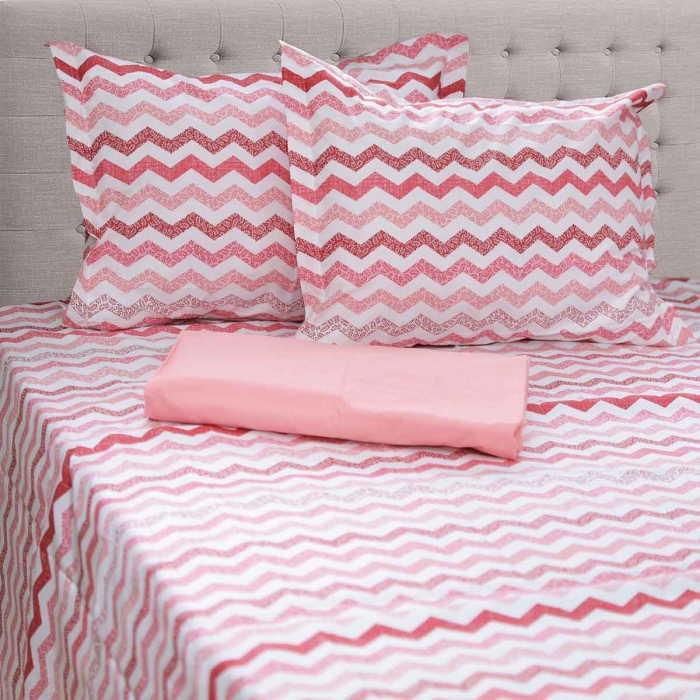 Parure de lit à deux places 100% Coton – 4 pièces – Zigzag