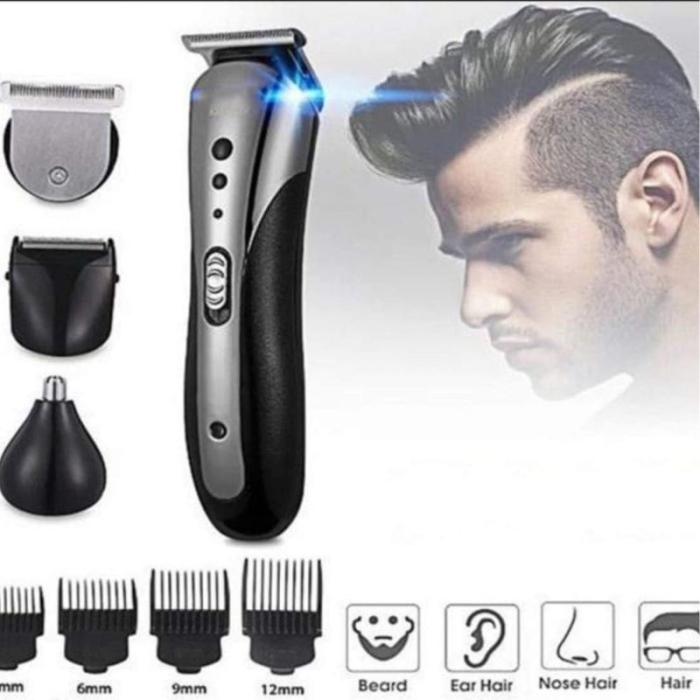 - Contenu : (Tondeuse + Pinceau de Nettoyage, huile, Câble de charge, 4 peignes , +1 pile rechargeable + 2 têtes des Poils de Nez et d’Oreilles)
